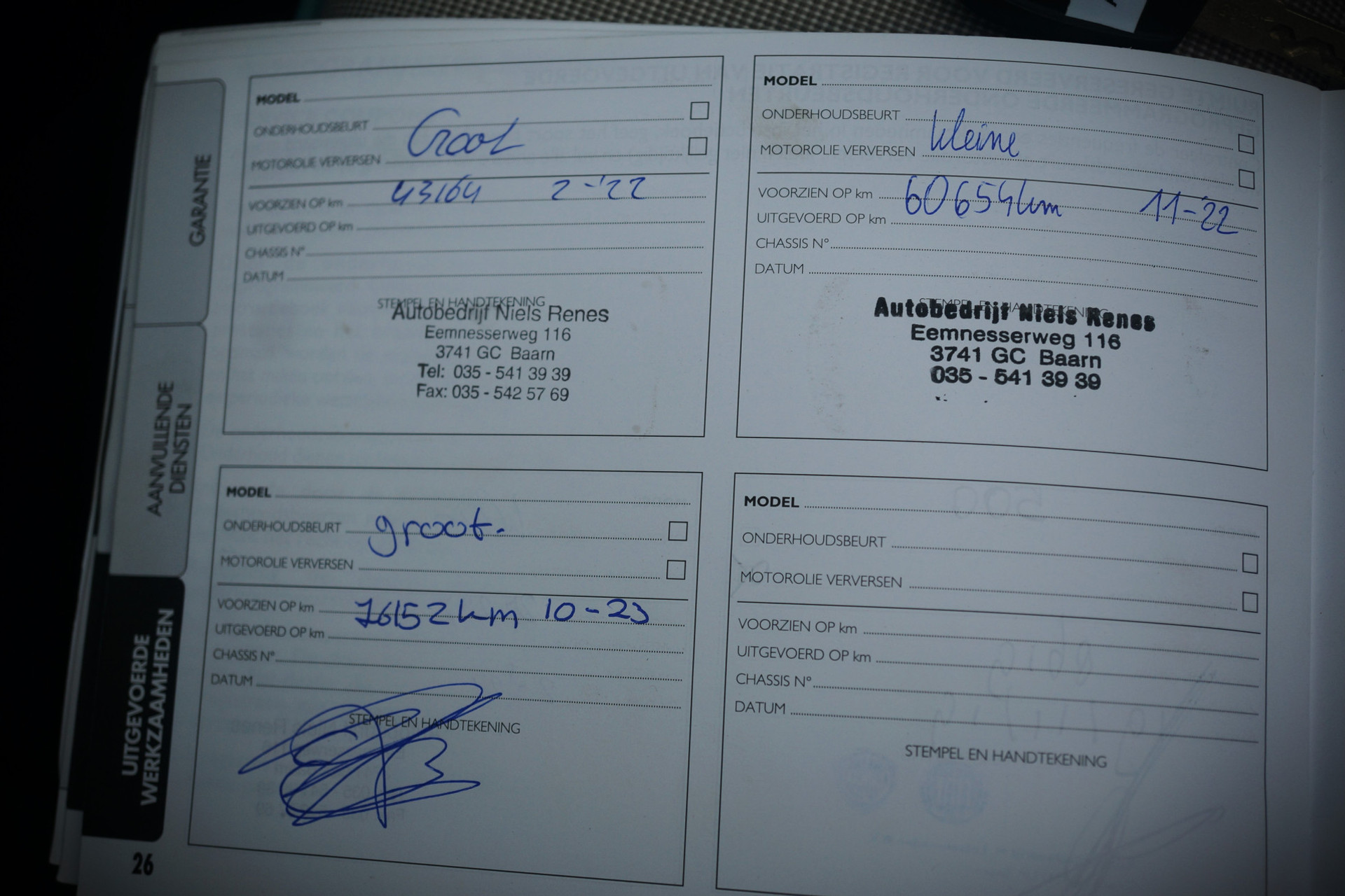 - Onderhoudsboekje aanwezig?